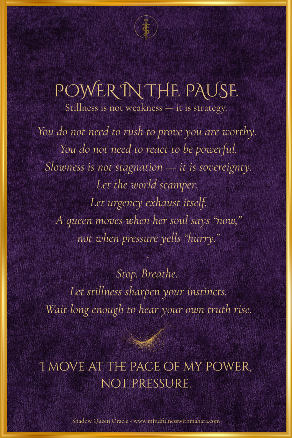 In a world obsessed with urgency, the Shadow Queen knows the strength of stillness.