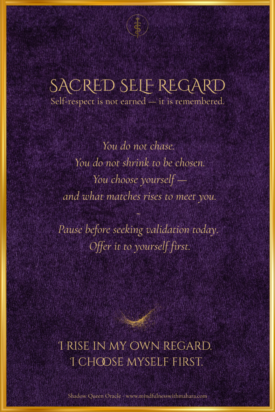 This card arrives when you’ve been offering softness, reverence, and generosity to everyone but yourself. Sacred Self-Regard is an invitation to return to your own heart with tenderness — and to honor yourself as someone worthy of devotion.