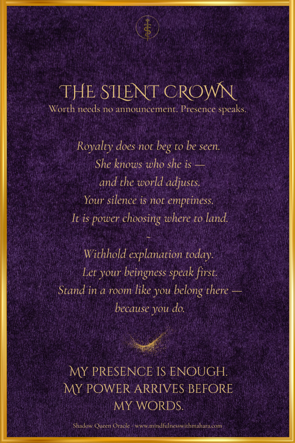 This card appears when you’ve been over-explaining, over-giving, or over-proving — when you’ve forgotten that your value is inherent, not earned through performance.