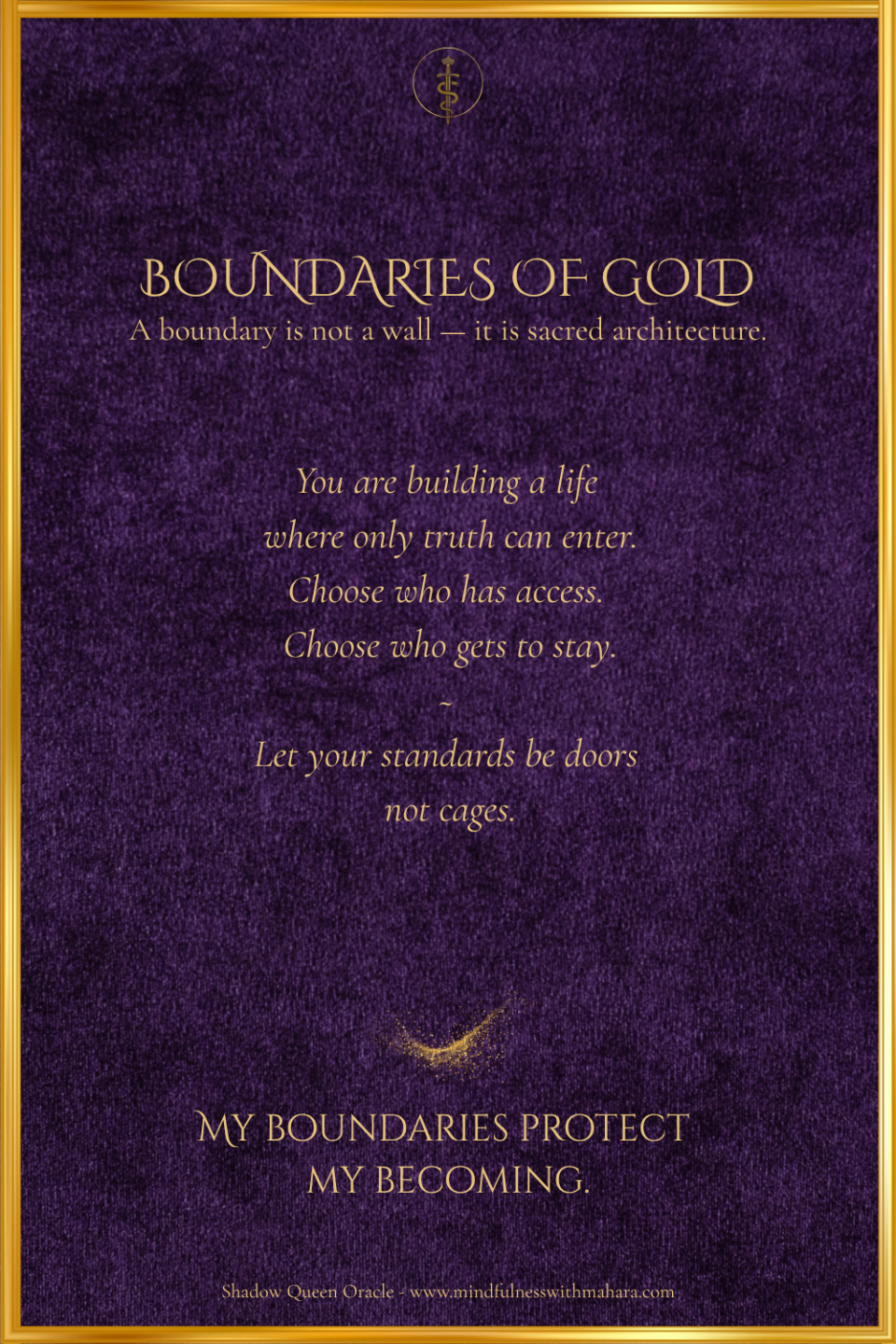 Boundaries of Gold appears when you’ve been giving too freely, absorbing too much, or allowing access to parts of you that require discernment. This card reminds you that your limits are not walls…